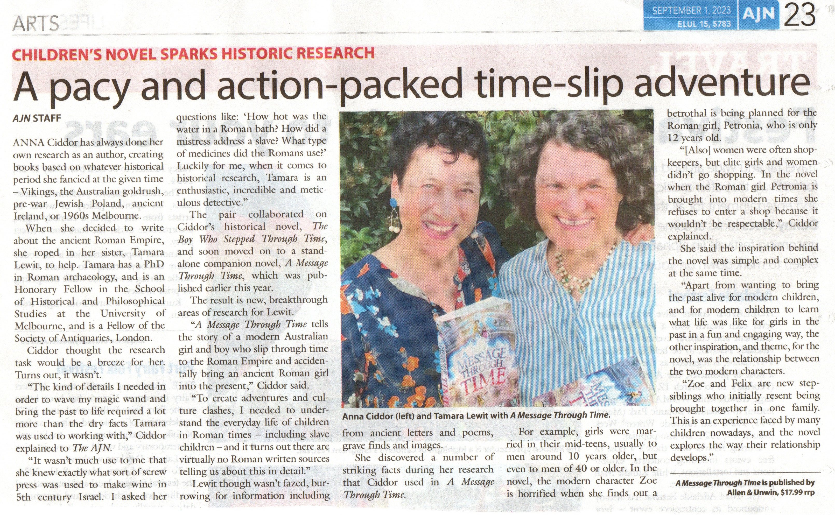 Read this newspaper article about the writing of A Message Through Time and find out how Anna collaborated with her researcher.